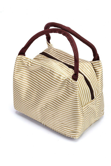 Фото товара 17041, термосумка для ланч-бокса в полоску «горячий обед» бежевая